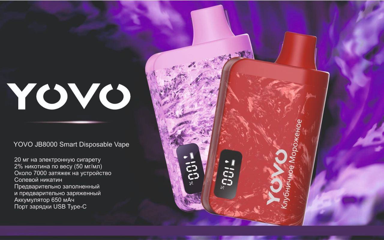 Мундштук сигареты имеет круглую трубкообразную форму, что делает её удобной в использовании. YOVO 7000 можно заряжать через порт USB Type-C, что очень удобно для пользователей.