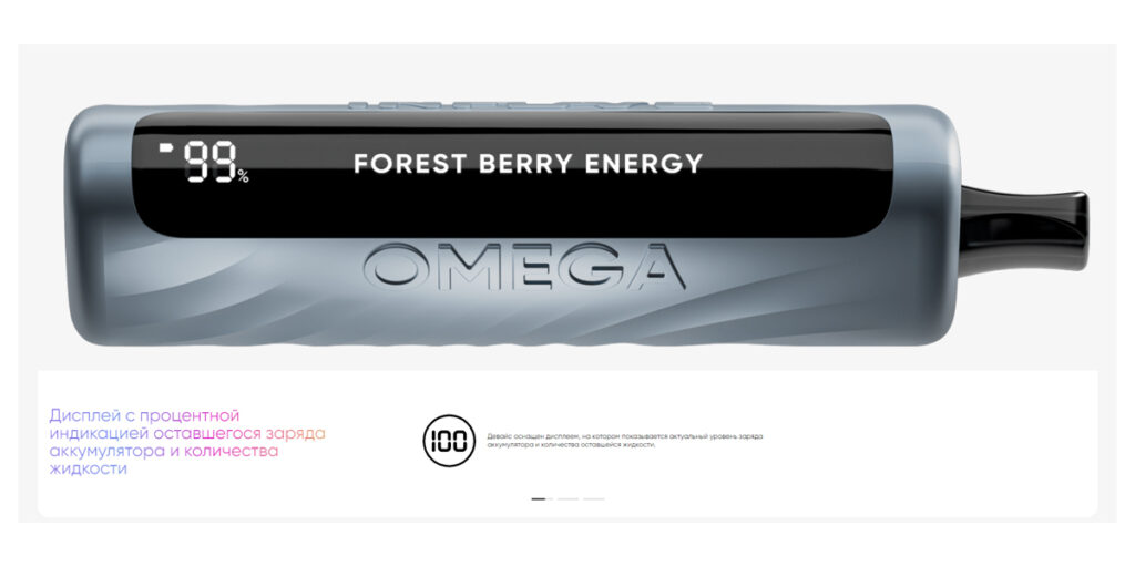 На упаковке и одноразовой электронной сигарете INFLAVE OMEGA преобладают яркие сочные оттенки. Упаковка имеет простой, но стильный дизайн с ясным изображением продукта и фруктов, подчеркивающих указанный аромат. Четко указано количество затяжек — 10 000.