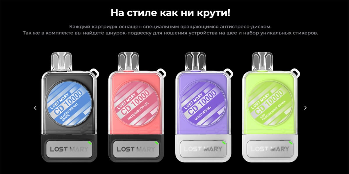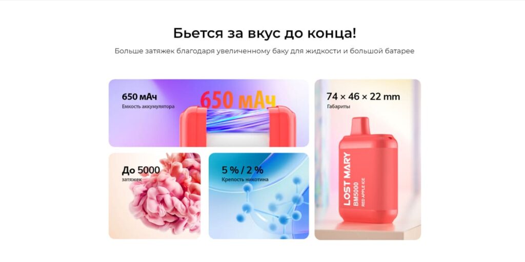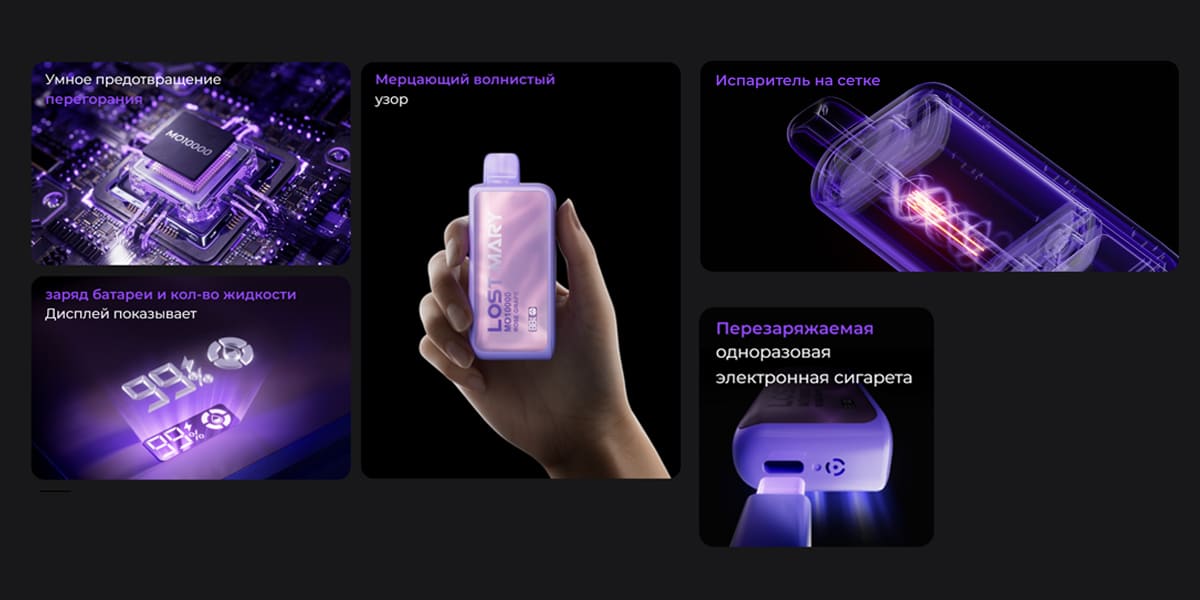 Электронные сигареты LOST MARY завоевали огромную популярность во всем мире. Разнообразие дизайна от простого до достаточного современного и стильного также привлекает своих покупателей. А высокое качество и бюджетная цена, это то к чему стремится компания. Каждый год LOST MARY разрабатывает эстетичные устройства с большим вкусовым ассортиментом.