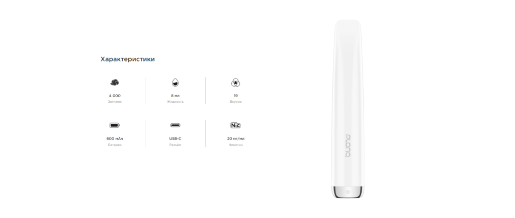 Плонк предлагает электронные сигареты и жижи начального уровня. В ассортименте есть модели от 600 затяжек и более, есть модели как с перезаряжаемым аккумулятором и дисплеем, так и стандартные без каких-либо функций. Начинка фирменная и мощная, с контролем безопасности.