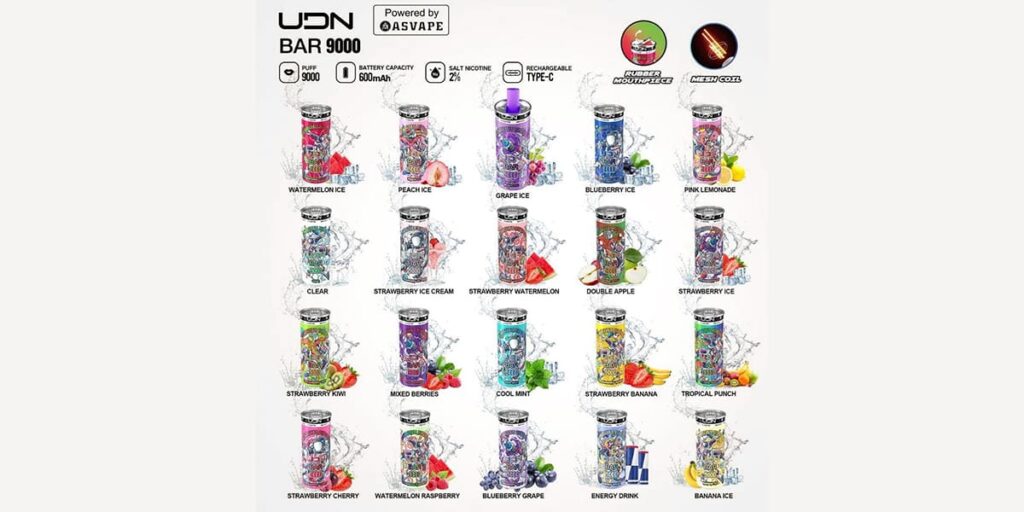 UDN BAR (бар) 9000 представляет собой новый этап. В данной модели дизайн выполнен в виде реалистичной баночки с напитком. Каждое устройство дополнительно украшено уникальным принтом, что заслуживает особой похвалы для команды дизайнеров. Объем бака для солевой жидкости с никотином большой емкости, так же как и встроенный аккумулятор. На дне устройства расположен порт USB-C, который обеспечивает надежное функционирование в самых разнообразных условиях. Девиз данной одноразки – наслаждайтесь изысканными вкусами и погружайтесь в мир вейпинга с комфортом и удовольствием.