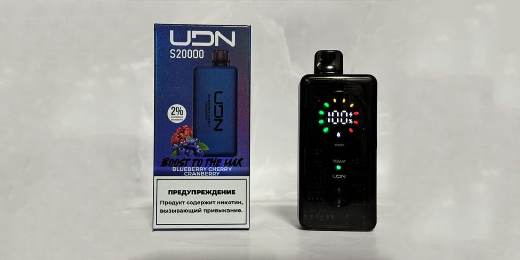 UDN S 20000 — стильная электронная сигарета с продвинутым дисплеем и кнопками Boost и Regular для настройки парения. Имеет объем картриджа 20 мл, емкость аккумулятора 750 мАч с быстрой зарядкой USB Type-C. Предлагает разнообразные вкусы, включая алоэ виноград, персик груша и взрывную ягоду вишня. Не требует ухода и идеально подходит для новичков и опытных пользователей.