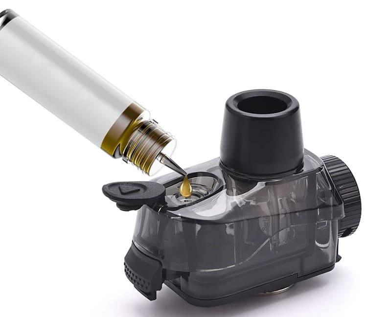 Для того чтобы заправить картридж, необходимо открыть силиконовую заглушку на верхней части поверхности и залить 6 мл жидкости.