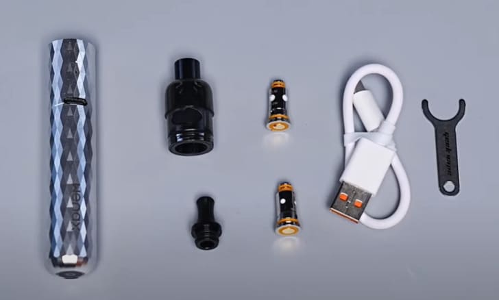 Укомплектован новый девайс вполне стандартно, но что еще ожидать от довольно простой POD-системы, поэтому в коробке вейпера ждет: