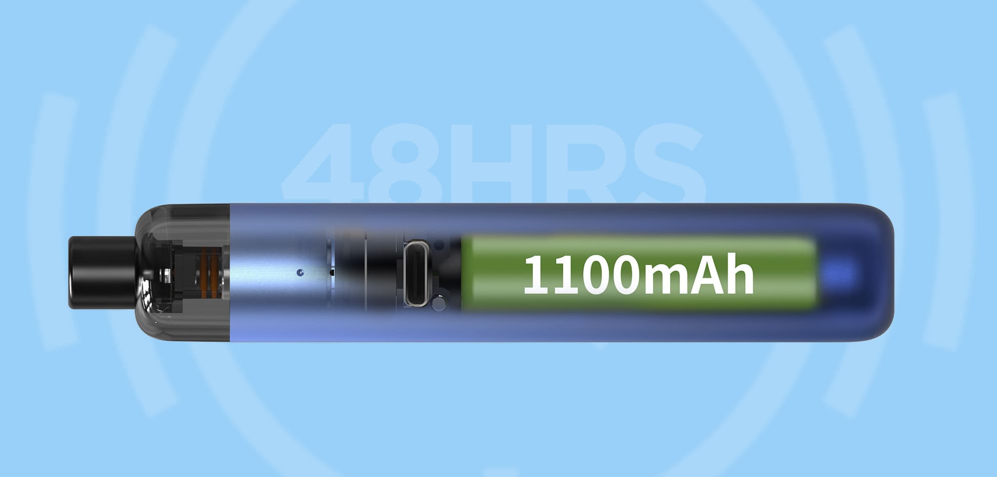 Питание GeekVape Wenax S-C Pod kit обеспечивается встроенным аккумулятором емкостью 1100 мАч, заряда которого будет вполне достаточно для автономной работы устройства в течение двух-трех дней, а для такого небольшого девайса это довольно неплохой показатель.