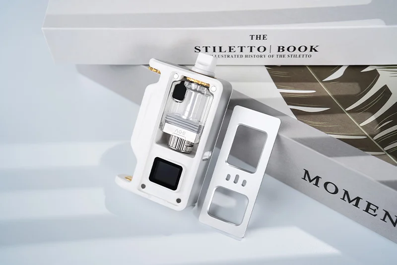 Панель управления находился по всему корпусу, в виде крупной кнопки активации и клавиши управления, а также на корпусе можно увидеть монохромный дисплей, который располагается на противоположной стороне. Разъем Type-C для зарядки современного образца, он внутри корпуса. Отсек для АКБ формата 18650, и кстати он открытого типа.