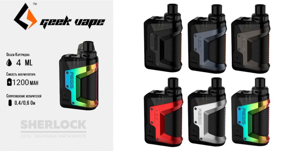 В последнее время пользуется популярностью среди подов. Корпус выполнен в форме прямоугольника. На корпусе небольшой экран и кнопки для регулировки мощности. Увеличенный объем жидкости до 4 мл и мощность аккумулятора 1200 mAh, дает возможность не думать о заправке целый день.