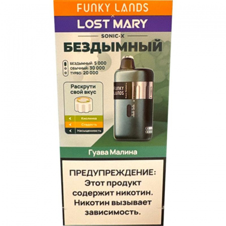 Одноразовые электронные сигареты FUNKY LANDS SONIC X со вкусом Гуава малина – новинка от бренда FUNKY LANDS. Аккумулятор емкостью на 800 mAh с возможностью подзарядки через разъем USB Type-C и бак с 20 мл предзаправленной жидкости (Солевой никотин крепостью 2% (20 мг/мл)) позволяют совершить до 30000 затяжек. Хватит примерно на 60 дней