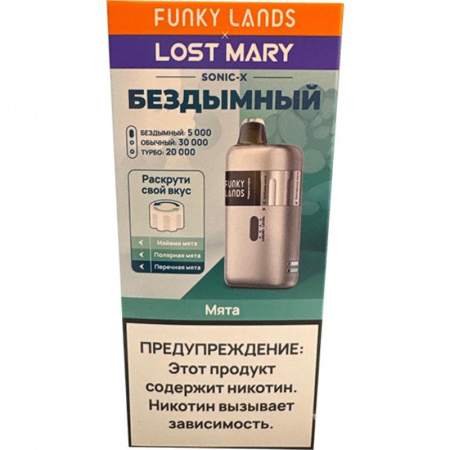 Одноразовые электронные сигареты FUNKY LANDS SONIC X со вкусом Мята – новинка от бренда FUNKY LANDS. Аккумулятор емкостью на 800 mAh с возможностью подзарядки через разъем USB Type-C и бак с 20 мл предзаправленной жидкости (Солевой никотин крепостью 2% (20 мг/мл)) позволяют совершить до 30000 затяжек. Хватит примерно на 60 дней