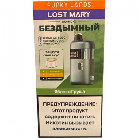 Одноразовые электронные сигареты FUNKY LANDS SONIC X со вкусом Яблоко груша – новинка от бренда FUNKY LANDS. Аккумулятор емкостью на 800 mAh с возможностью подзарядки через разъем USB Type-C и бак с 20 мл предзаправленной жидкости (Солевой никотин крепостью 2% (20 мг/мл)) позволяют совершить до 30000 затяжек. Хватит примерно на 60 дней