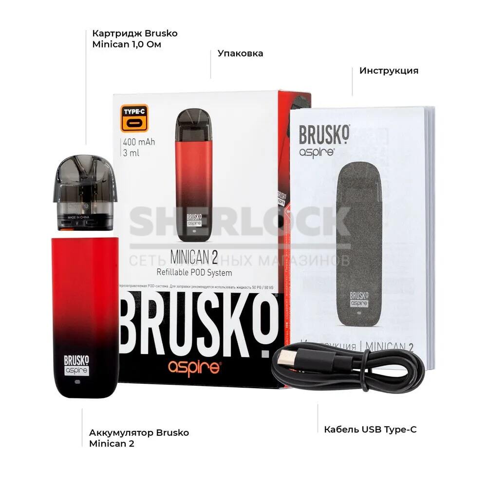 POD-система BRUSKO MINICAN 2 (Чёрно-красный грациент) на 3 мл ) купить в магазине watsonvape.ru по лучшей цене с курьерской доставкой по Москве и МО или самовывозом из магазинов в Красногорске. Доставка по России СДЭК,Почта России.